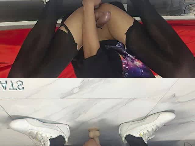 Big booty stocking babe big dildo riding on cam