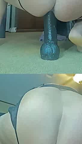 girl rides huge dildo deep until she cums
