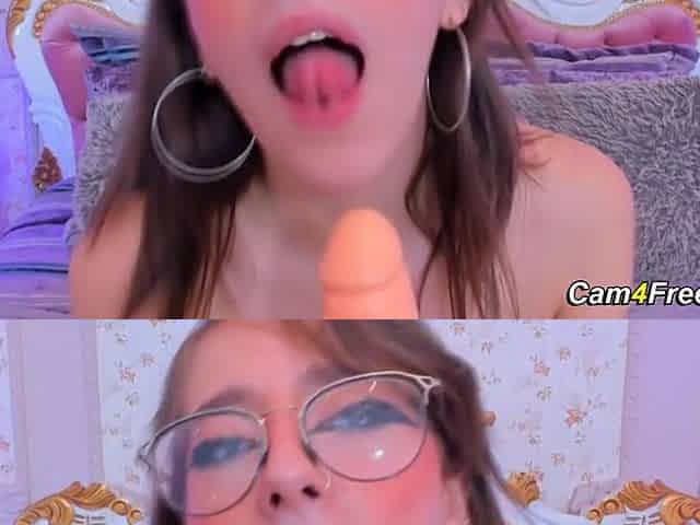 Solo chick Alice sucks and rides a hard dildo in her bedroom