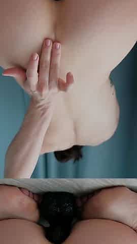 My milky tits bounce while I ride my pussy and ass with a black dildo