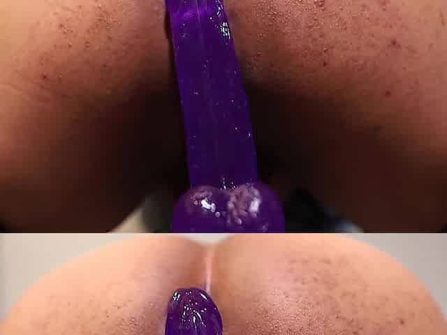Riding And Bouncing On Huge Knotted Dildo From Below
