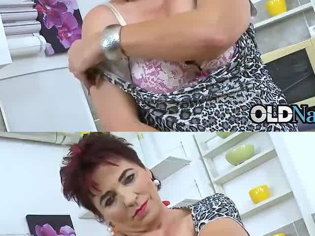 Horny Daphne with Saggy Tits Blowing and riding dildo