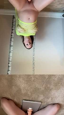Riding a huge dildo in slow motion