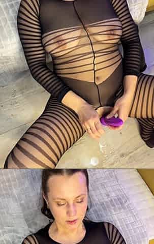 Blonde Teen Rides Dildo in Fishnets Until Orgasm