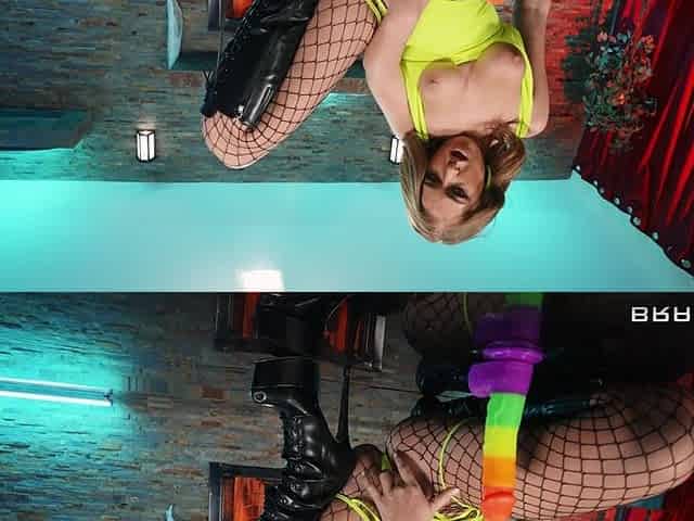 Fake-boobed slut rides a huge sex tool in hardcore solo clip