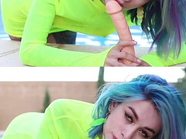 Blue-haired Babe Riding and Suck Dildo - Cum on Face Imitati