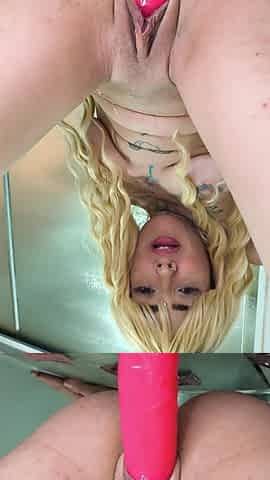 Mofos - busty blondie amalia davis rides her thick dildo in the douche as she screams noisily