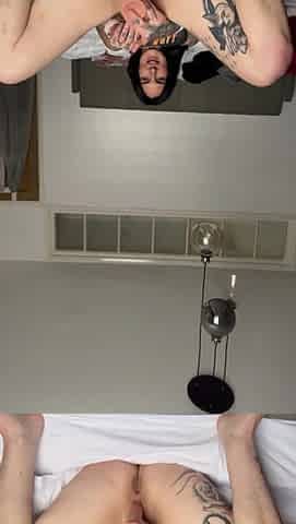 I lick and bang Marc's tiny and constricted booty! This guy rides my belt-on until that guy cums!