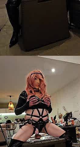 lola sissy doll riding a dlido in ebony latex underware