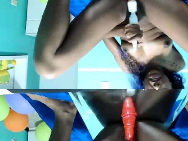 Hawt Black Whore with Curly Twat Rides Sex toy and Groans for Her Boyfriend