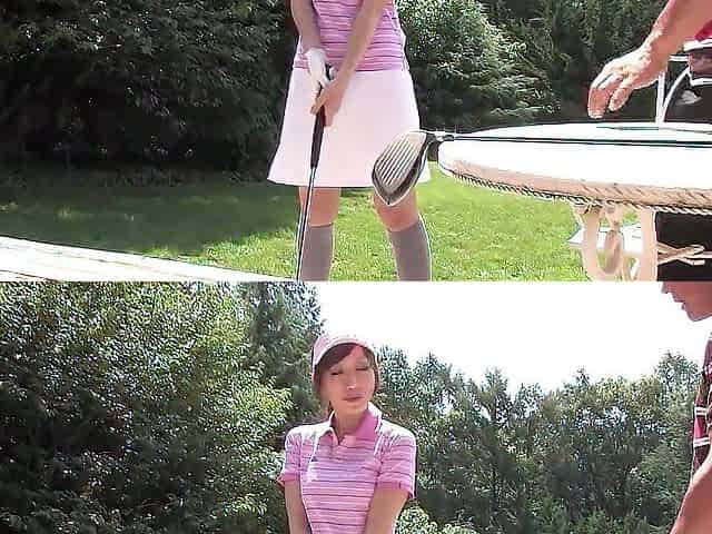 Skinny Japanese Teen give uncensored risky Public Blowjob to older Guy at Golf Lesson