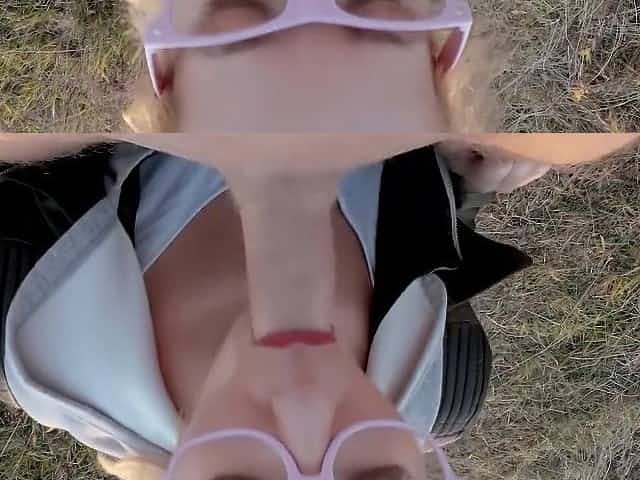 Blonde goes for risky outdoor blowjob