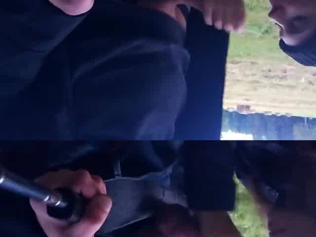 Risky public sex with a horny couple getting naughty on the roadside - blowjob and pussy licking