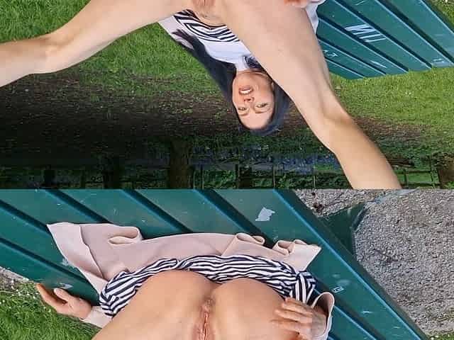Risky Fucking And Ass Spanked On A Park Bench Among People