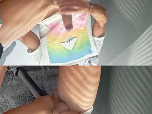 Risky masturbation in a public dressing room with a litle spunk flow - undressing sport shorts