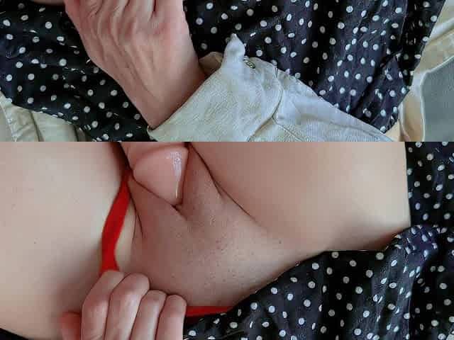 Daddy risky teasing rubbing fuck and cum on shaved dripping horny pussy schoolgirl