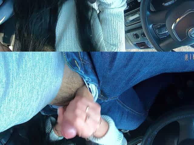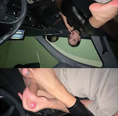 Public risky oral pleasure and foot fetish right in the parking lot in the car