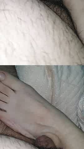 "Step mom masturbate tight pussy while pressing on step son dick her foot"