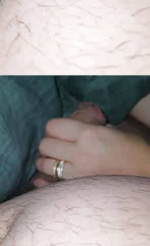 "Wife help husband wuth his erection by handjob under blanket "