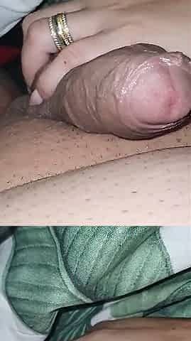 "Step mom takes hard step son cock on her hand abd habdjob him"