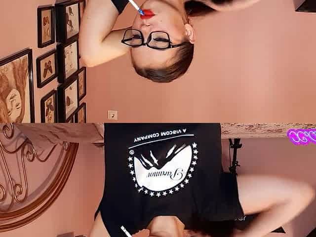 Fleshly brunette hair smokin' and wearing geek glasses
