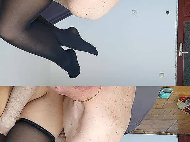 Lesbian MILF in Stockings Masturbates and Have Orgasm