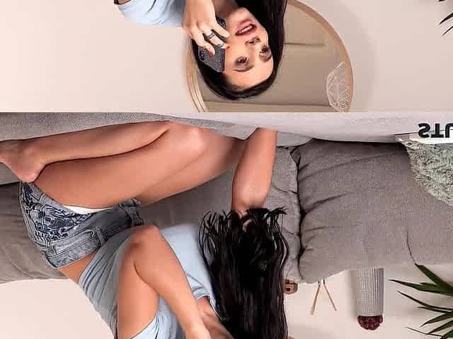 STUCK4K. Wonderful brunette from Romania is addicted to phones and sex