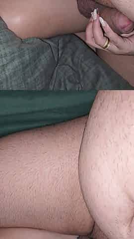 "Step mom in bed trying to convince step son have erection by handjob his dick"