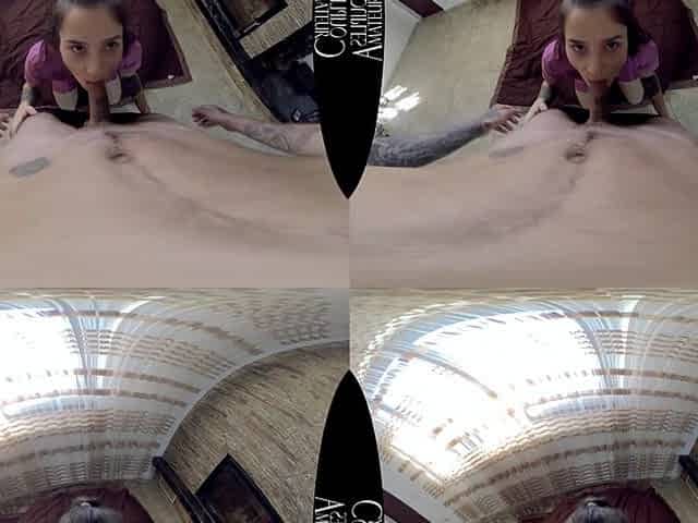 Skinny Brunette Dick Tugging And Face Cumming - AmateurCouplesVR