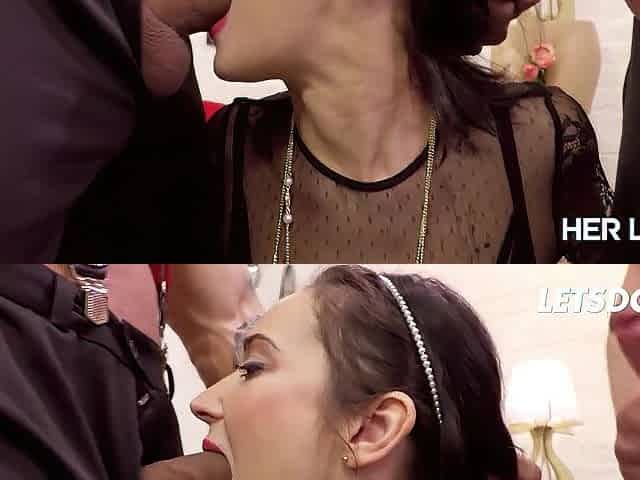 All Her Holes Are Open for Business as Those Schlongs Destroy Her from Each Angle in This Hawt Triple Stuffing