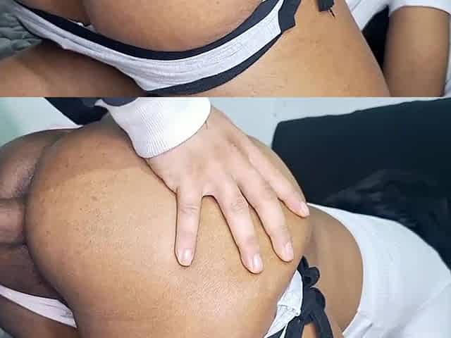 Brunette Hair Student Is Getting Her Booty Banged In An Interracial FMM Trio!