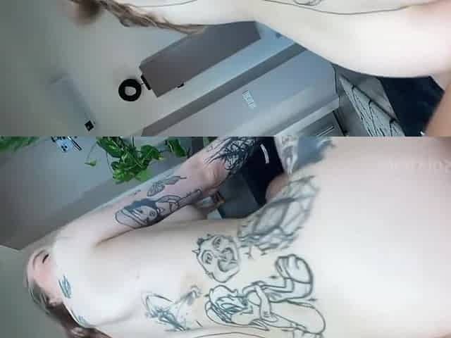 Rough sex in a cowgirl position for a tattooed blonde dick lover