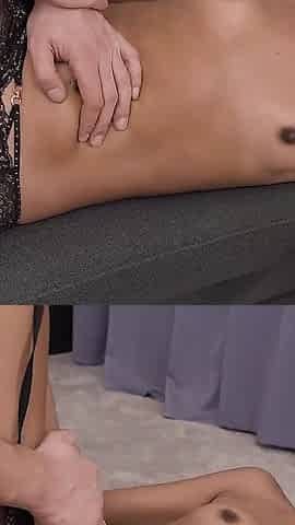 Masaje hot a hermanastra timida termina en dura cogida.