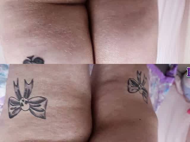 Sweetheart with round ass Posy demonstrates her wet shaved pussy