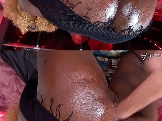 Round Ass Ebony Girl Loves to Fuck with BBC Dildo, She Twerk and Puts Oil in Herself