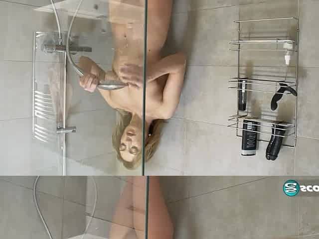 Preggo Step mamma Stepson see's and films wile bathing