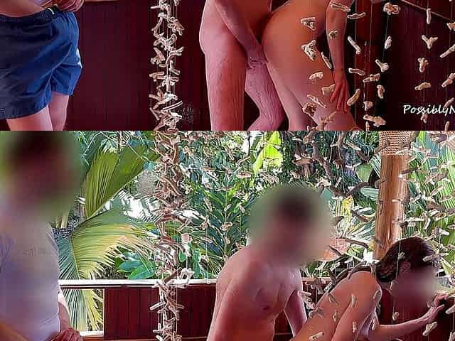 Wild outdoor shower cuckold sex with beautiful round ass