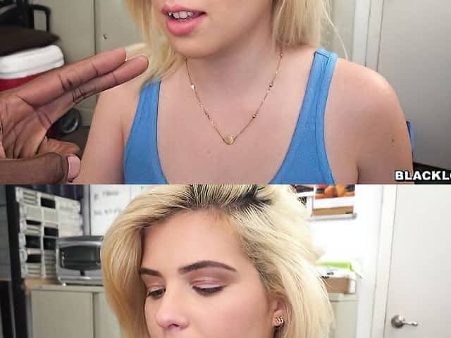 Beautiful blonde chick with round ass Rikki Rumor fucks with a black dick