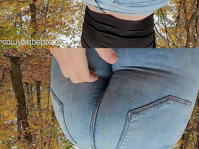 Touching Hawt Large Booty Brunette hair in Constricted Jeans Public