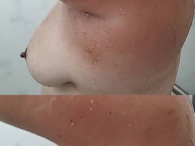 The wife soaping up her titties in the shower