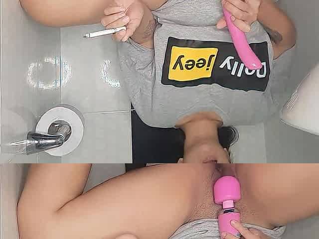 Sexy gal masturbates in the washroom from her boyfriend/Smokes a cigarette / speed game