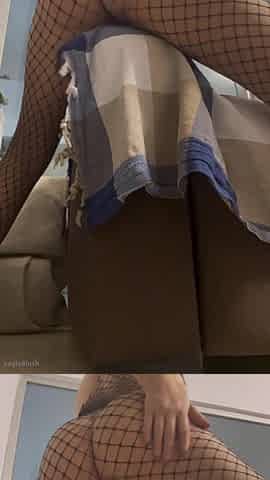Fishnet-clad tease humping the couch like a desperate slut