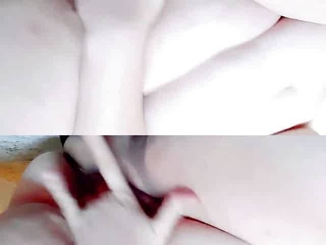 Asian Girl Rubbing Virgin Pink Pussy with White Big Boobs
