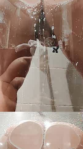 Teasing with her large booty throughout shower window