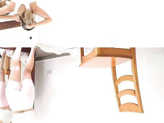 See this hot blond jerk off her bald vagina to an climax