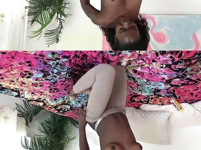 Rubbing oil over that large ebony butt previous to tapping her booty and creampie her vagina
