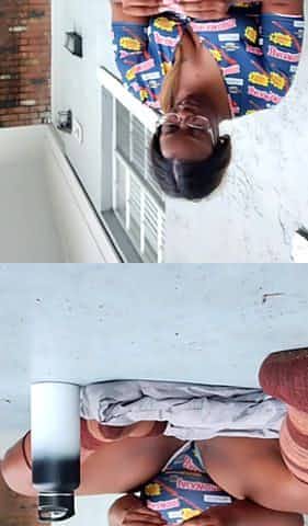 Horny ebony slut eats pussy and rubs vibrator against clit