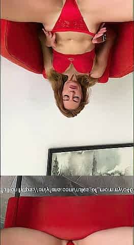 Slim mother I'd like to fuck in red lace underware gently rubs her moist vagina and swollen clitoris