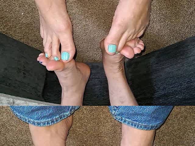 Barefoot footsie with spring pedicured toes