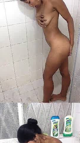 Sexy brunette hair films her body, melons and fingers her butt and vagina in her room